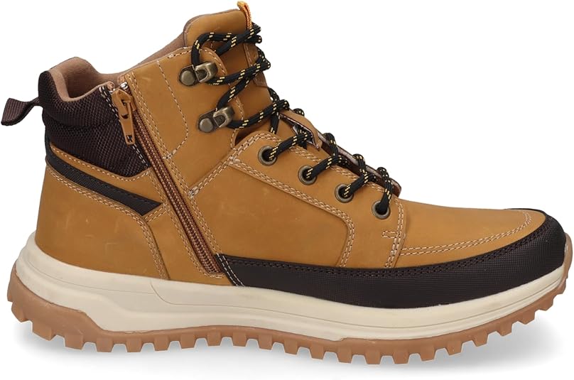 Botín en color tan, amarillo, forrado elaborado con materiales de máxima calidad, durabilidad y confort en piel nobuck. Máxima resistencia!