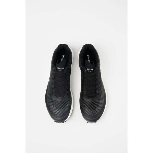 La Kjerag neix de combinar els nostres compromisos amb una investigació exhaustiva. Dissenyada pel màxim rendiment en trail running de color negre i blanc. Creada per persones tan compromeses amb el medi ambient com tu. El resultat és una sabatilla amb una reactivitat òptima, còmode també a grans velocitats, i amb una adherència i estabilitat extremes per a corredors de tots els nivells. Ja sigui mentre et prepares per al teu primer quilòmetre vertical o mentre lluites pel pòdium en la teva cinquantena cursa de 100 milles, amb la Kjerag seràs imparable.