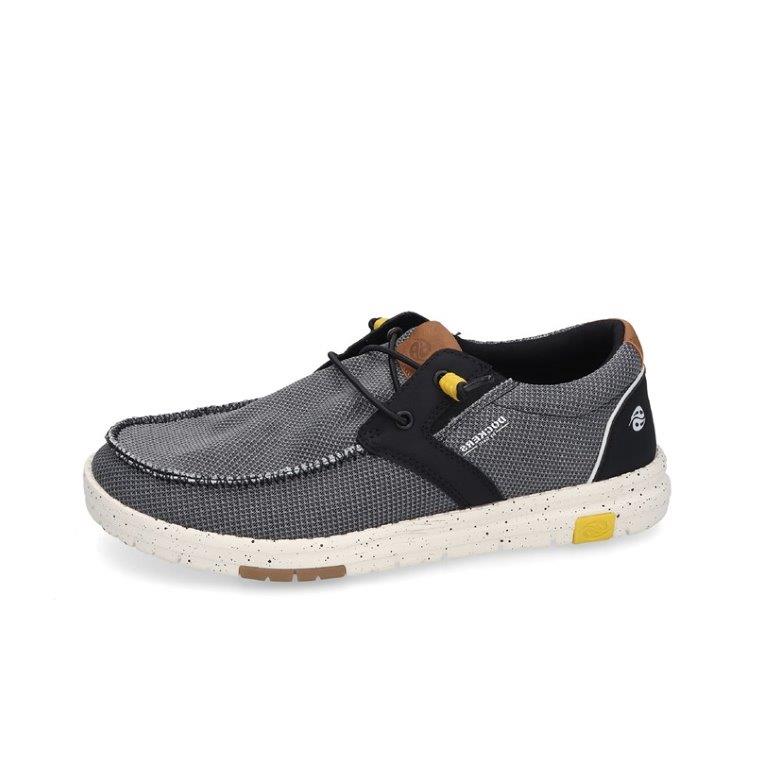 Zapatillas para hombre de lona textil negro con tonos grises, esto debe ser la temporada, las costuras acolchadas le dan al zapato el típico estilo Dockers.