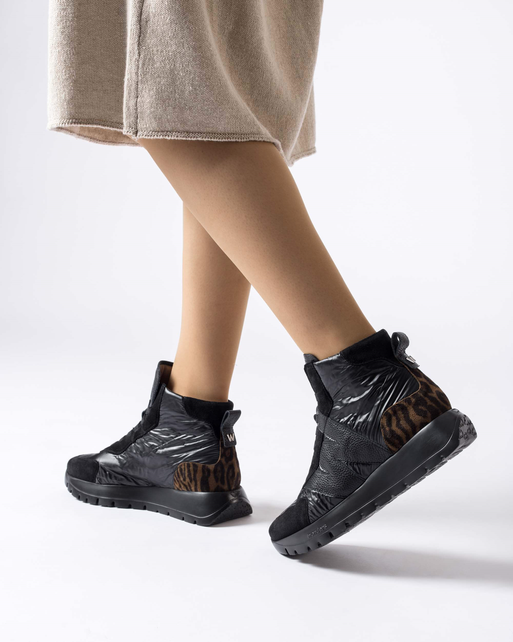 Deportivo en bota combinado piel animal print.